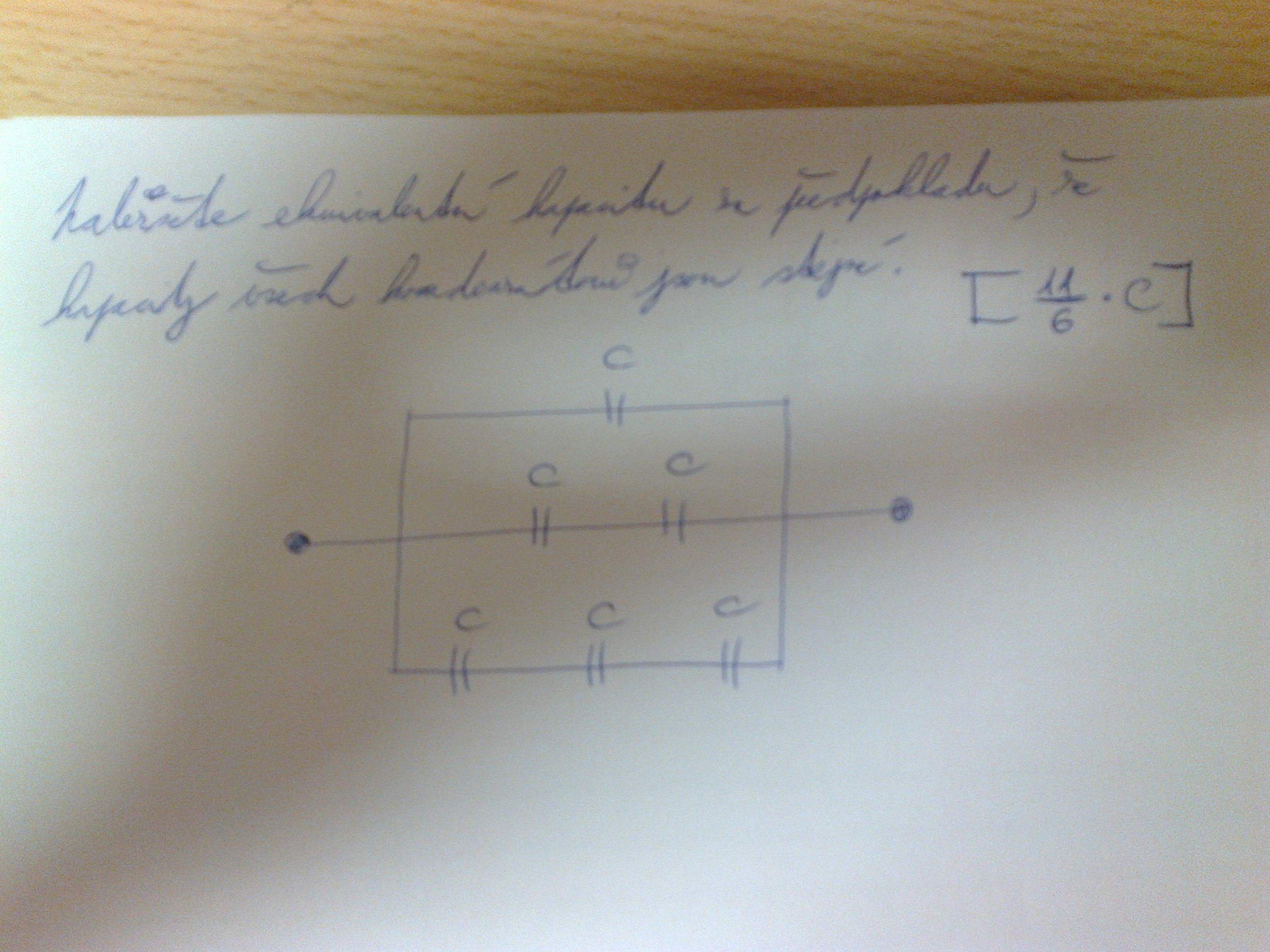 Dolní lajna: 1/C1 = 1/c + 1/c + 1/c , tedy C1=c/3