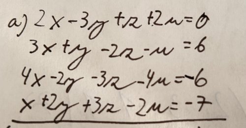 Prosím o pomoc s tímto příkladem. Nevím, jak k výsledku dospět. Zkoušel jsem to řešit přes Gausovu eliminační metodu a furt mi to nevychází. Rovnice je uvedena na obrázku