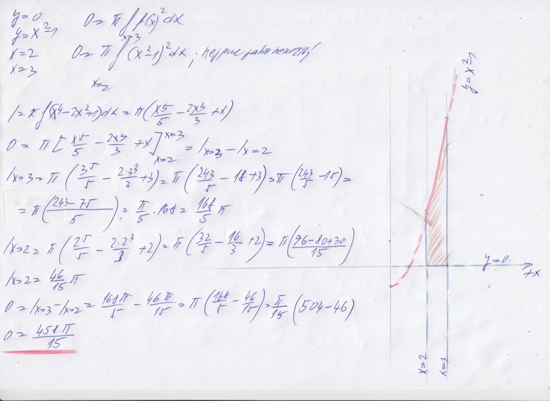 Ten druhej se dost blbě popisuje textem. ale nakresli si tu věc, kterou rotuješ. A pak je na to nějakej vzoreček vygoogli si objem rotačního tělesa. Akorát bacha na to, kterej vzoreček použiješ. jedewn je na to když to rotuješ kolem osy x a druhej kolem osy y.
